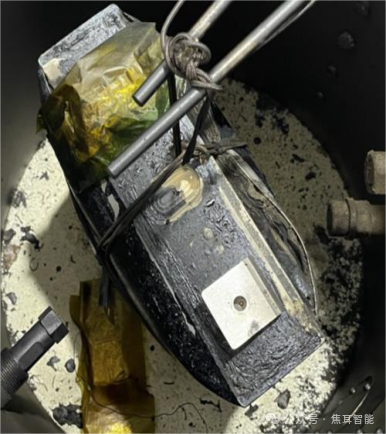 用耐高温胶带将样品热电偶贴合于实验电池大面中心处,然后将电池悬挂在量热仪的量热腔中。